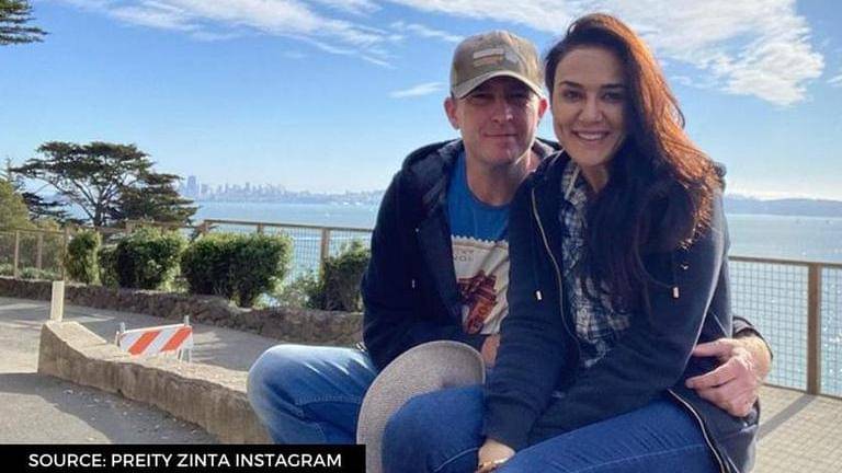 Preity Zinta recently took to Instagram to share a picture with her husband Gene Godenough. The actor was seen flashing a wide smile as she posed with her husband. The duo was spotted standing in the snow as they posed for the picture, in which, Preity donned a red bomber jacket with a blue cap while Gene kept it casual in a black jacket and cap.