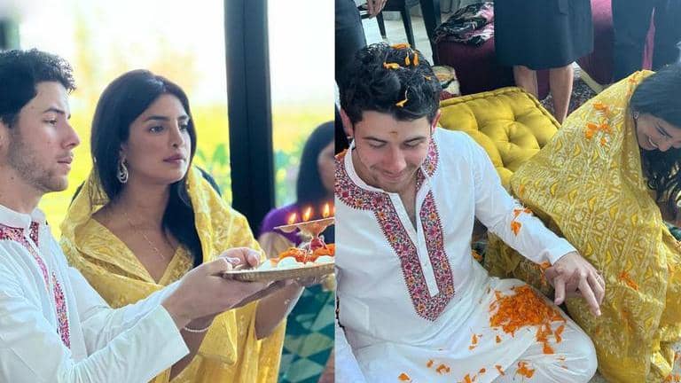 Priyanka Chopra and Nick Jonas perform Diwali puja decked up in Indian attire; See pics