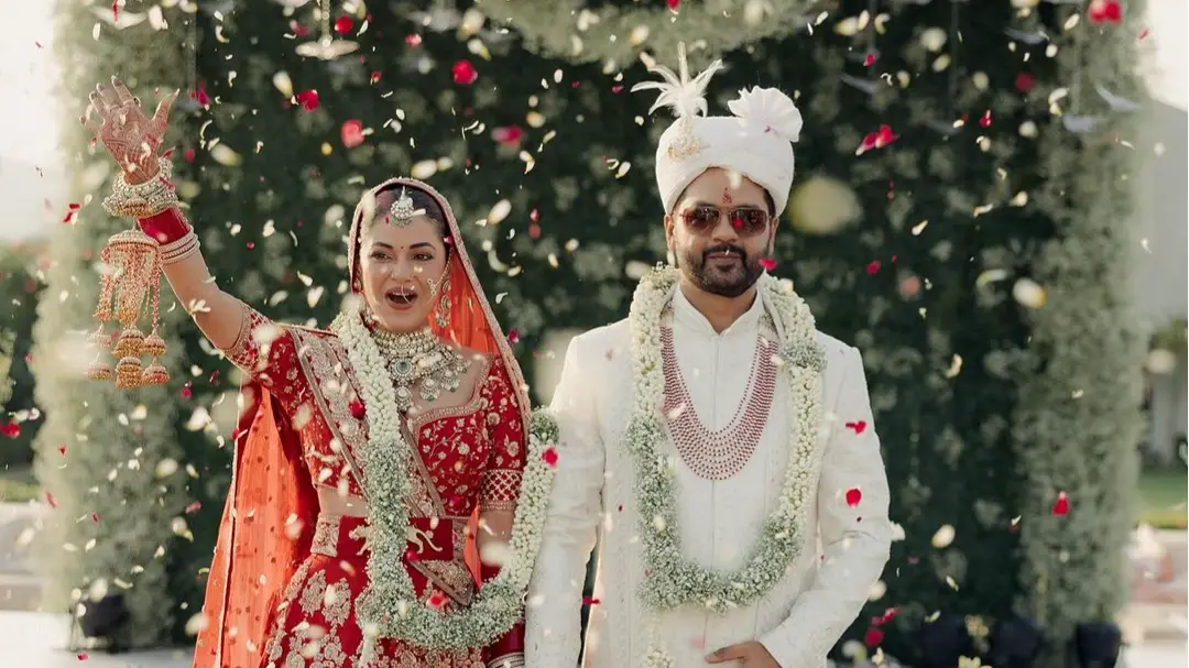 Meera Chopra looked glittering in a traditional red lehenga designed by none other than Sabyasachi, while Rakshit complemented her elegance in a white sherwani. The first glimpses of the newlyweds radiated sheer marital bliss. Check out the first pictures of the duo as a couple:-