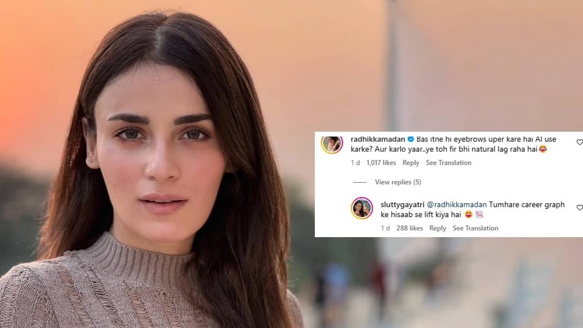 An Instagram user shared a video of the actress posing for the paparazzi and compared it with her throwback photo from a TV show. She captioned it as "Radhikka Madan really took notes from Mouni Roy—new face, new vibe". On noticing, the actress took to the comment section and slammed the user who wrote, "Bas itne hi eyebrows uper kare hai AI use karke? Aur karlo yaar..ye toh fir bhi natural lag raha hai."