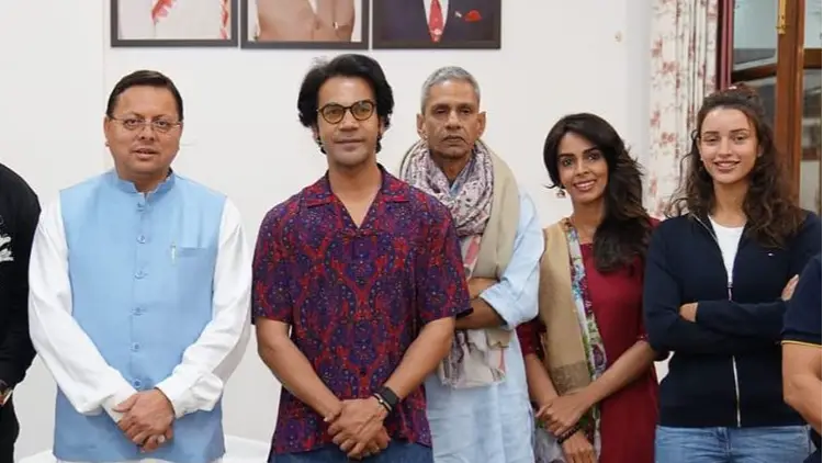Rajkummar Rao, Triptii Dimri, Mallika Sherawat and Vijay Raj met Uttarakhand Chief Minister Pushkar Singh Dhami at his residence on Monday evening. Dhami shared the photos on his social media handle and revealed that they discussed the possibilities of film production in the state.