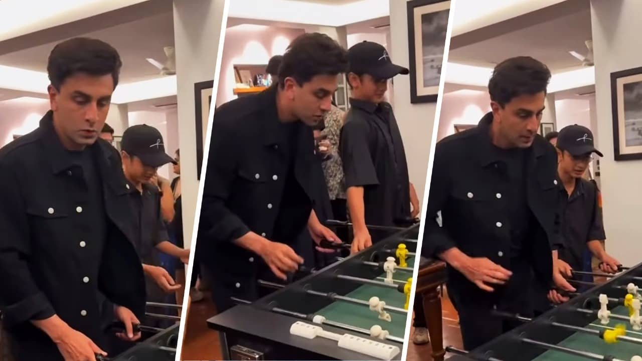 In a new video, Ranbir Kapoor was seen sporting a black t-shirt and bottoms. He sported a clean-shaven look, which has now gone viral online. In a new video from inside the event, Ranbir Kapoor could be seen playing foosball with Aamir Khan's Azad Khan. Azad is Aamir and Kiran's son and is 14-year-old.