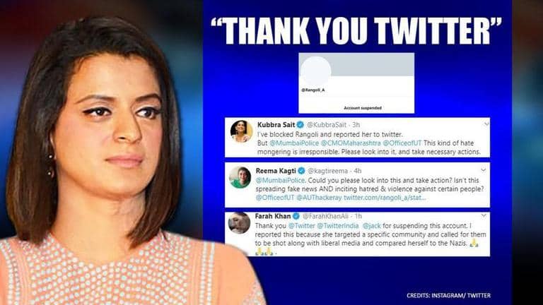Kangana Ranaut’s sister Rangoli Chandel’s Twitter account was suspended after celebrities reported her controversial tweet, urging to shoot a certain community.