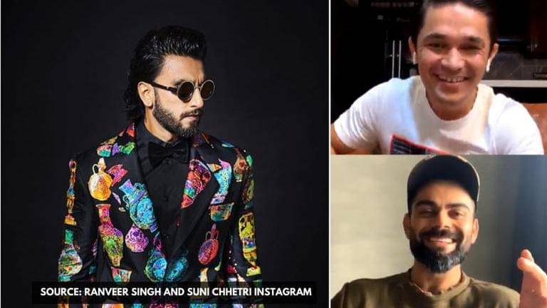 Ranveer Singh has been an active user of social media. He recently bombarded Sunil Chhetri and Virat Kohli's Instagram live stream with his funny comments.
