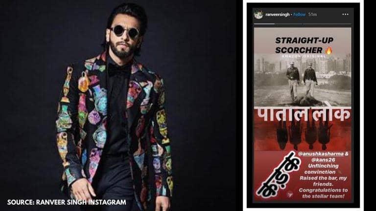 Ranveer Singh took to his Instagram story and gave a great review for Anushka Sharma's Paatal Lok. Check out the post and read to know what he has to say.
