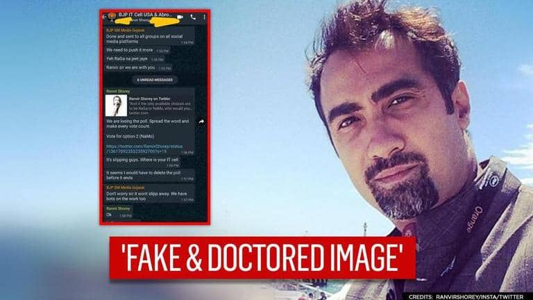Actor Ranvir Shorey while opining on India's current political situation on Tuesday started a poll asking followers to choose a leader if the only available choices were Rahul Gandhi or Narendra Modi. Within a few hours, a fake and doctored image of a WhatsApp group chat surfaced on social media where someone impersonating Ranvir Shorey was seen requesting everyone to vote for Option 2 (Narendra Modi) in his Twitter poll.