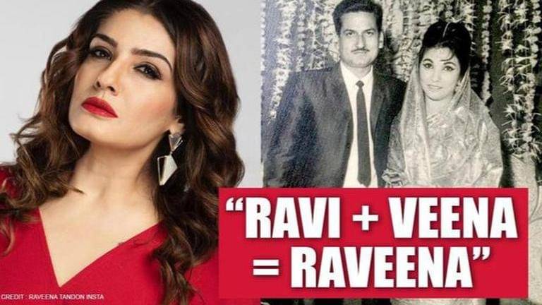 Bollywood actor Raveena Tandon, who ruled the roost in the film industry in the 90s, took to her Instagram handle to convey her heartfelt wishes for her parents, Ravi Tandon and Veena Tandon, on the occasion of their 54th wedding anniversary. She shared some beautiful memories of her parents and wished her 'mom and pops' through the caption where she also explained the etymology of her own name.