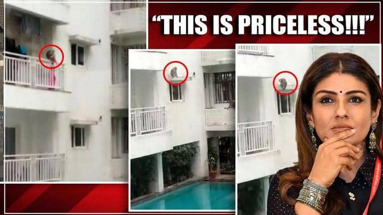 Raveena Tandon had the best reaction to Monkey's taking over a residential swimming pool.'Don't know where and when, but this is pure monkey business', she said