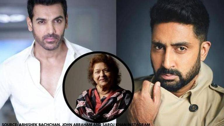 Saroj Khan passed away in the wee hours of Friday. Actors Abhishek Bachchan and John Abraham pay tribute to the late choreographer on social media. Read on.