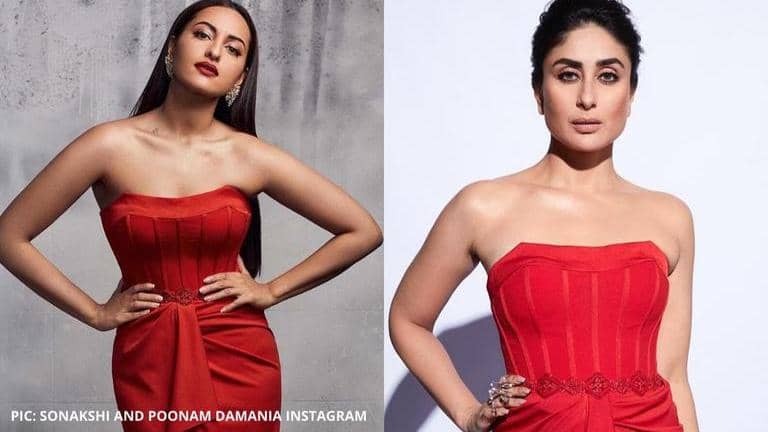 Sonakshi Sinha and Kareena Kapoor wore a similar red strapless gown differently on different occasions. Take a look and decide who wore the dress better.
