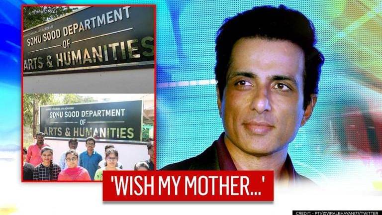 Sonu Sood on Wednesday remembered his mother after an educational institute in Andhra Pradesh named their Arts and Humanities department after him
