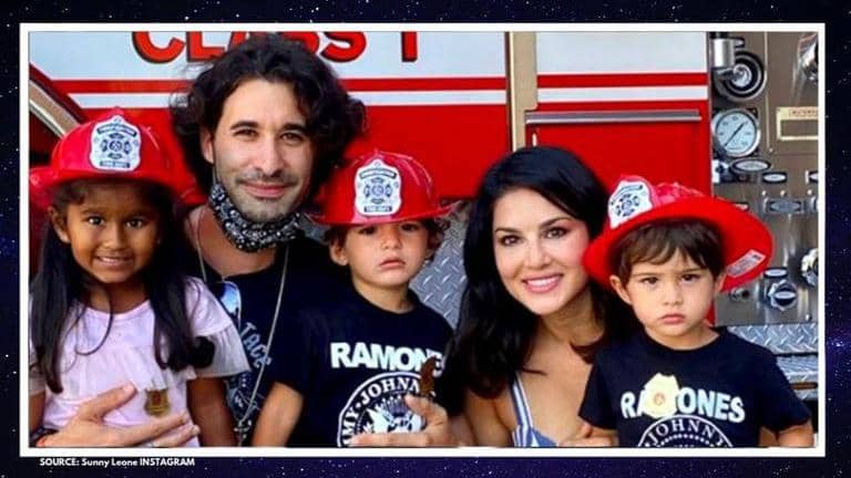On Friday morning, August 7, Sunny Leone took to her Instagram and shared a photo along with her husband Daniel Weber and kids Noah, Nisha, and Asher. The family of five visited a fire station in Los Angeles and Sunny was thankful for the community helpers for teaching her kids about 'fire safety' and for also making them feel happy. As seen in the picture, Sunny, Daniel, Noah, Asher, and Nisha sat down for a family portrait at the fire station, wherein the kids have donned similar hats.