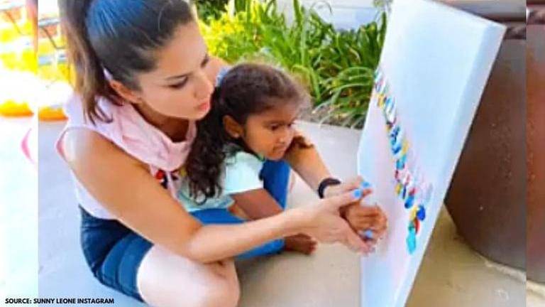 On Wednesday morning, Sunny Leone shared a collage of videos and revealed that she, along with her kids Nisha, Noah, Asher, made six paintings over the weekend. Sunny shared a glimpse of the painting made by her and wrote that Nisha helped her out with the same. The paintings were made by Sunny and her kids, as a gift for Sunny's best friend Marci.