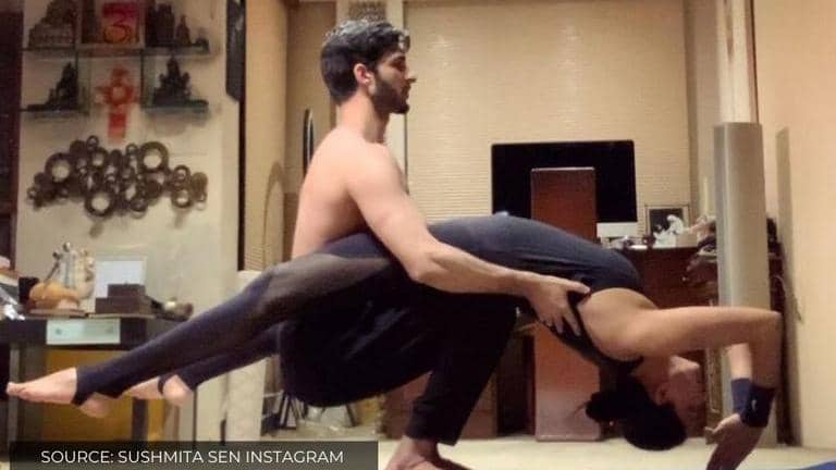 In the pictures that Sushmita Sen shared she is dressed in dark yoga clothes and Rohman is dressed only in workout pants. The setting looks like the inside of their home. Sushmita Sen has shared four pictures that show the flexibility of the pair. They both seem to be relaxing in all of the exercises that they are doing, some of which seem difficult to do. In one exercise, Sushmita Sen is suspending on air with the help Rohman, which is rather amusing.
