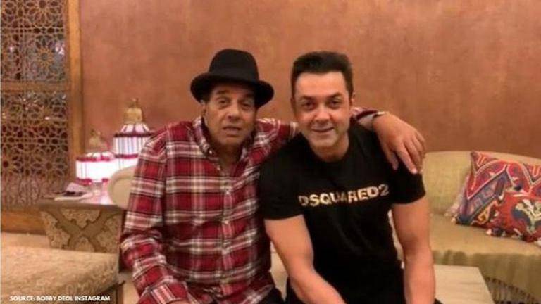 In the picture, the actor can be seen sitting between his parents, Dharmendra and Prakash Kaur. The trio can be seen striking a simple pose and are all smiles for the camera. Bobby can be seen sitting wearing a white shirt, waistcoat and a pant. Dharmendra can be seen sporting a white shirt and checkered lungi, while Prakash can be seen donning a printed saree. They both can be seen wearing a garland in their neck.