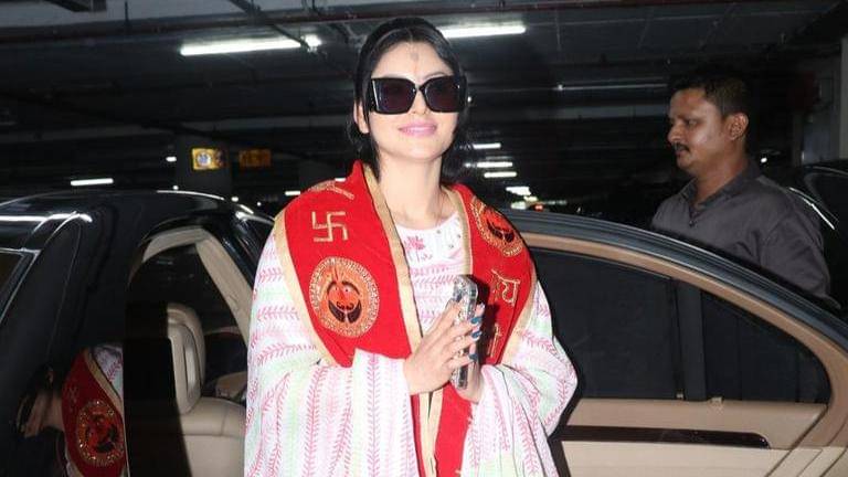 On Thursday, Urvashi, who is known for her high-end fashion choices was spotted at Mumbai airport wearing a light, summery, traditional suit. Her ensemble were in the shades of pastel pink, which gave it a muted look. The actor chose a pink-coloured traditional suit that exuded elegance and grace. The suit was adorned with intricate detailing, showcasing her appreciation for fine craftsmanship. What caught everyone’s attention was the patka that she wore around her neck, bearing the words ‘Jai Shri Balaji’. Completing her ensemble with a pair of oversized sunglasses, Urvashi exuded grace and elegance.