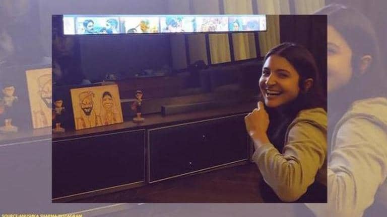 Anushka Sharma shared a glimpse of her living room where she is seen sitting in front of her television watching Paatal Lok. As soon as the actor shared the picture, her fans started pointing out a portrait from Virat Kohli and Anushka Sharma’s wedding. A sketch where Anushka Sharma and Virat Kohli were seen making funny faces was spotted in the picture. This sketch was kept on her TV slab with two male and female superhero figures kept on either side of the portrait. Anushka Sharma’s post has a quirky caption too. She wrote, “Sab lok ke sab log ab dekh rahe hai #PaatalLok. Go watch. “.