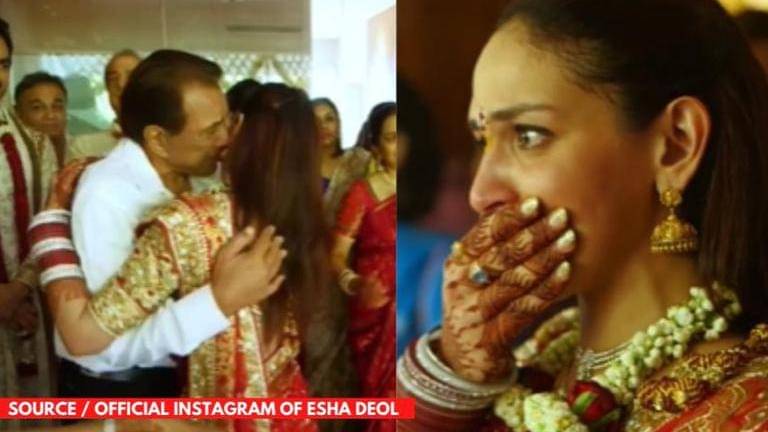 Esha Deol recently took to her social media to share a video of her Vidaai where a teary-eyed Dharmendra and Hema Malini bid goodbye to her. Watch video.