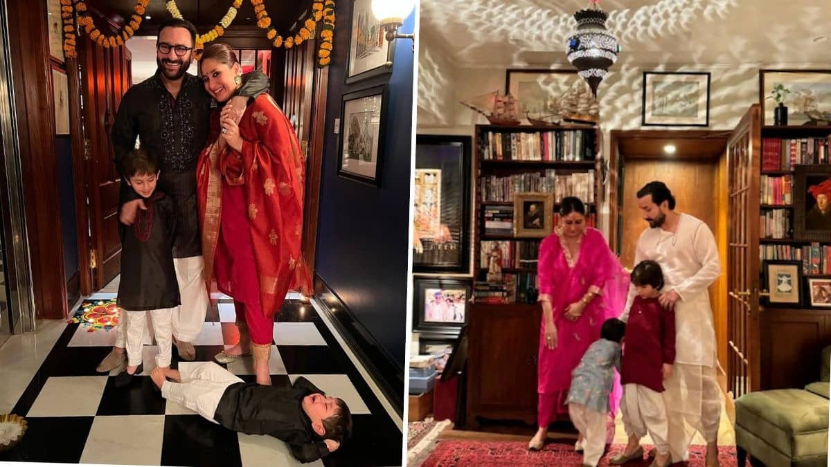 However, the actresses' struggle to get the perfect Diwali click did not end that year. The subsequent year, also the highlight of Kareena's Diwali post was the fashion — it was the candid chaos. Dressed in a bright pink kurta set, Kareena posed with Saif, who opted for a classic white kurta-pyjama. Dressed in a maroon kurta and white bottoms, Taimur is seen making funny faces, Jeh appears distracted, and Kareena is visibly trying to hold the frame together while Saif smiles patiently at the camera.