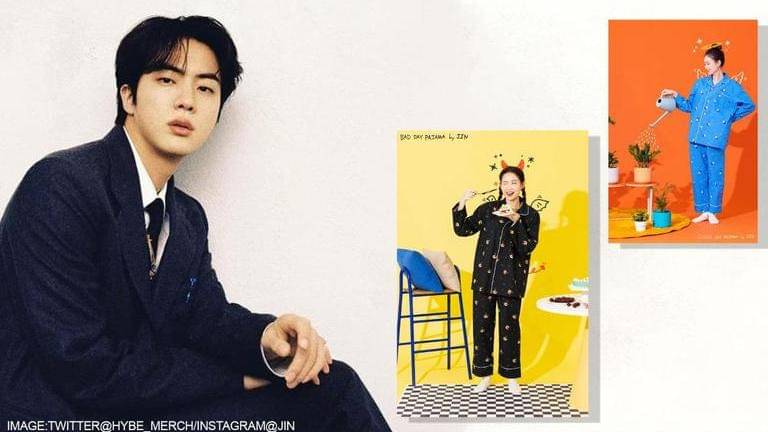 The band had planned to unveil their exclusive merchandise, especially designed by the artists themselves, throughout the first month of 2022. The seven members had four days assigned to each of them to unveil their self-designed merchandise. As the eldest member of the band, Jin was the first one on the list to recently reveal a pair of night suits and pillow designed by him. . The member had unveiled a pair of 'Good Day and Bad Day' pajamas and pillows. The pajama sets are in two colours, blue for a good day and black for a bad one. They also have cute stickers of Jin imprinted on them.