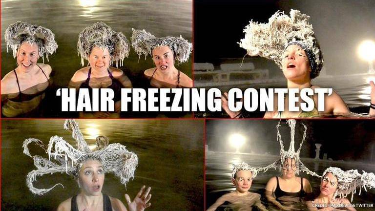 Whitehorse, Canada holds a hair freezing contest every February when temperatures reach – 22 degrees. The well-below-freezing temps combined with a dip in the 104 degree hot springs makes for one awesome contest. #MeanwhileInCanada pic.twitter.com/pGfZkpb5QD