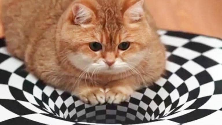 Cat viral video: Cat hovering over circular optical illusion drawn on the floor leaves netizens baffled | Watch