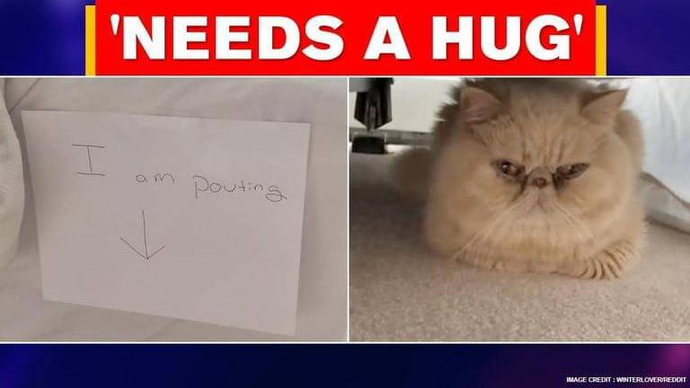A hilarious footage of a puffed-up Persian cat seated under its “pout chair” has amused the netizens. Shared on Reddit by the user ‘winterlover’, nearly 5 seconds footage portrays the fluffy brown coated feline with its perfect pout and expressive eyes perched angrily underneath the furniture on which the owner pasted a note saying, “I am pouting”. Captioned as “He got in trouble so I made this sign”, the clip has accumulated over 14,000 upvotes as Redditors poured a slew of reactions on the feline “not in a good mood.”