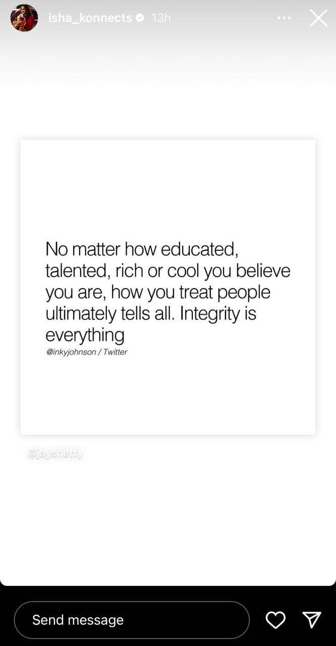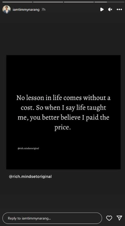 Not just Isha, but Rohit Narang too has been sharing a series of cryptic notes to his Instagram stories, sans any context. The latest in this regard is a quote reflecting on having to 'pay the price'. The quote reads, "No lesson in life comes without a cost. So when I say life taught me, you better believe I paid the price."