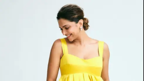 In the photos, Deepika opted for a sleeveless yellow dress. She paired it with a pearl earring. The actress, who is awaiting the release of Singham Again, wore her hair in a messy bun to keep the look minimal. The actress has also announced that she will be hosting a live session for her fans today.