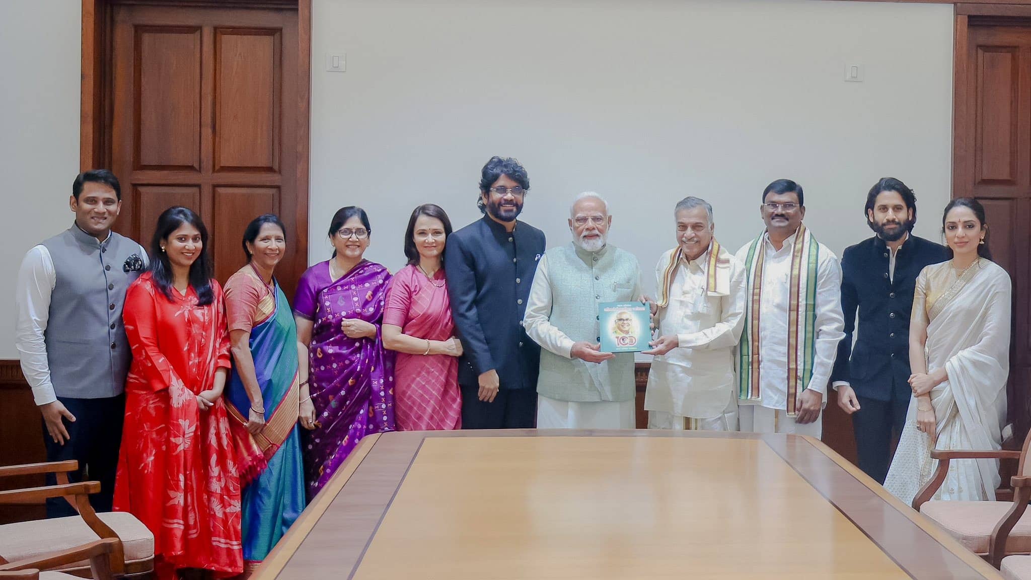 Profoundly thankful to Hon'ble Prime Minister @narendramodi ji for today's meeting at Parliament House. It was an honor to present 'Akkineni Ka Virat Vyaktitva' by Padma Bhushan awardee Dr.