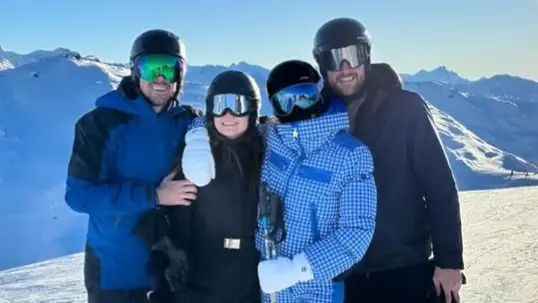 They enjoyed winter sports like skiing. In one of the images, the actress slipped into a printed bikini as she posed near a hot water pool, with snow-capped mountains surrounding their resort. She captioned her post, “Jägerbomb anyone?”