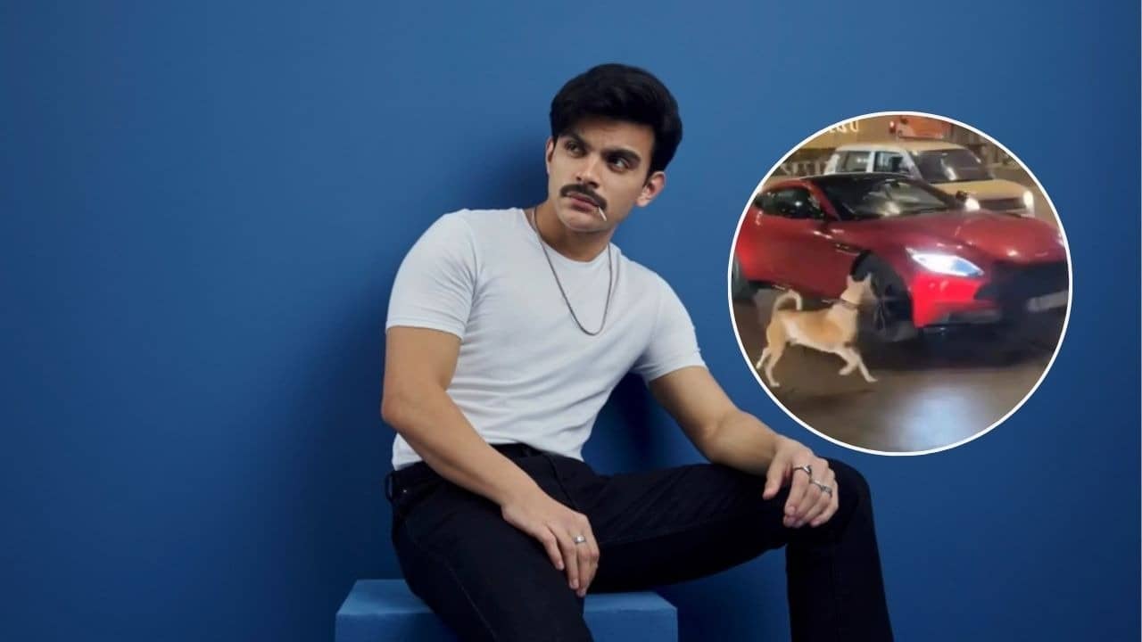 In now-viral video on X (formerly twitter) and Instagram shows Veer Pahariya in his red Aston Martin stopping at a traffic light. When the signal turns green and vehicles start moving, Veer attempts to drive forward, but a stray dog blocks his way. As he tries to manoeuvre around the dog, it chases his car while barking. Veer remains calm, ignoring the dog and keeping his attention on the road.