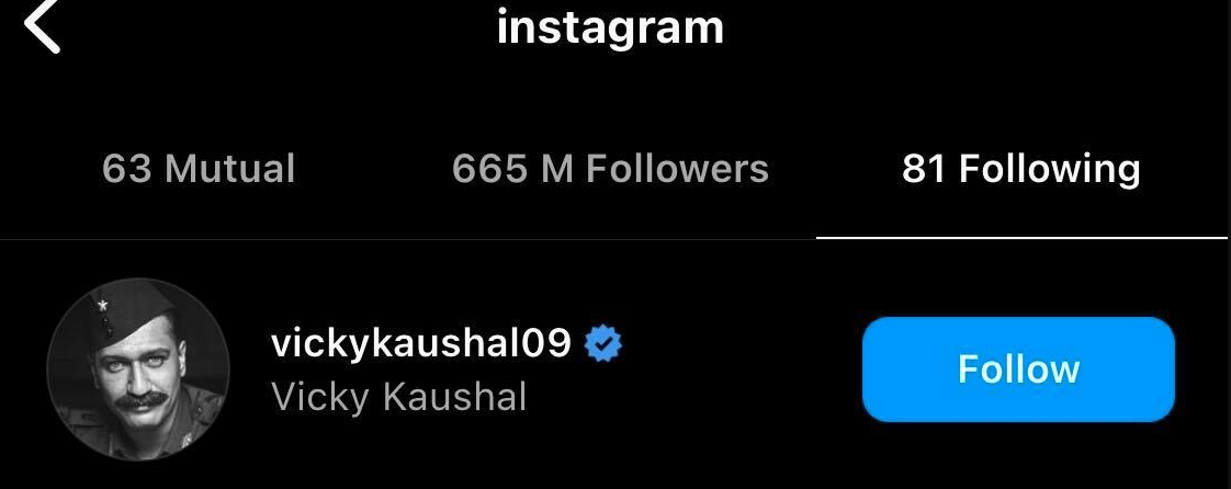 Amid the 81, mostly verified accounts that the official Instagram follows, is also that of Vicky Kaushal's. If the exclusivity of the feat does not already make it special enough, there is another factor adding novelty to it. Vicky Kaushal is the only Indian actor on the 81-names long list. Vicky Kaushal himself is yet to address this.