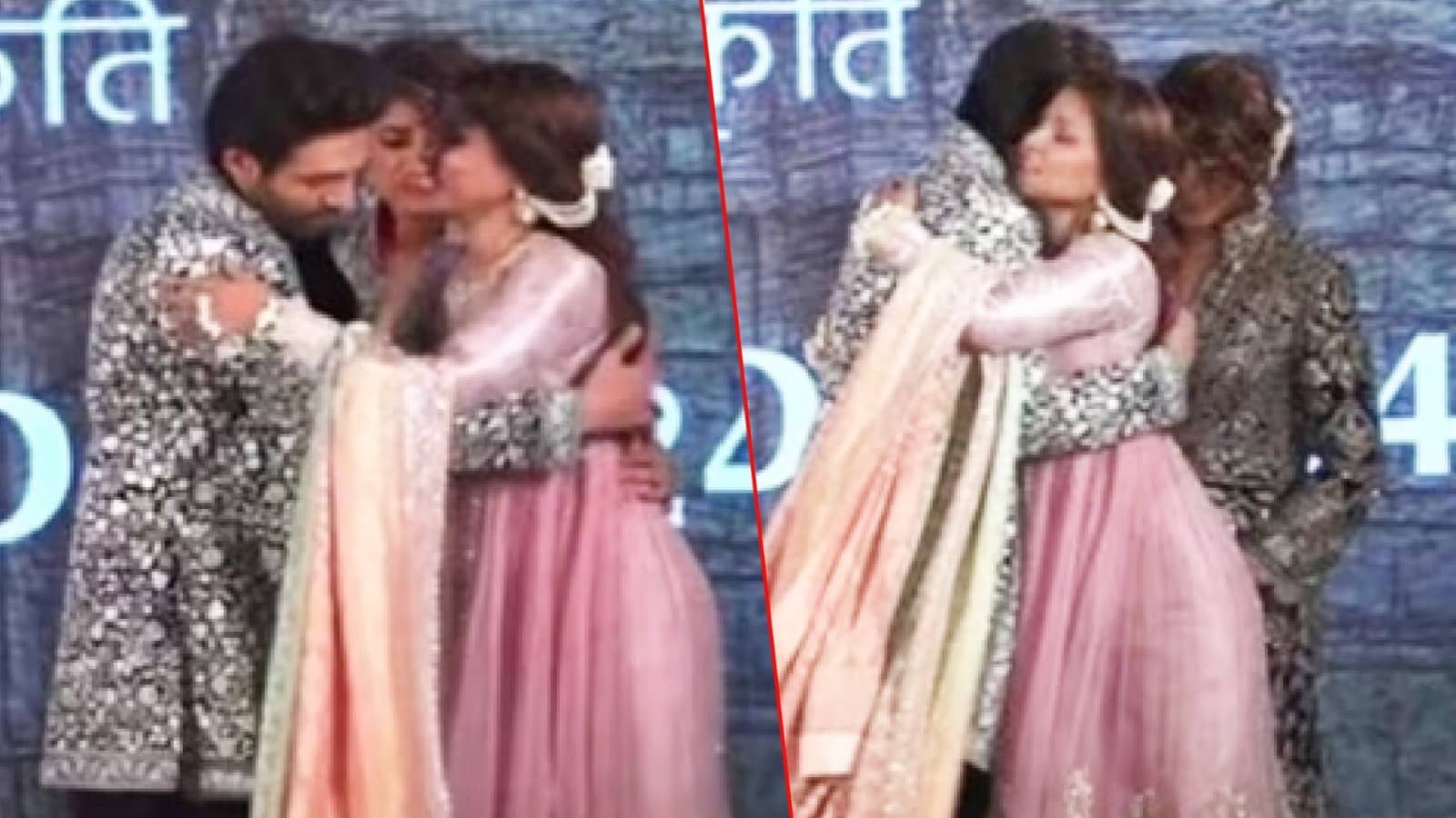 Hina Khan reaches out to hug Kartik Aaryan on the stage but unexpectedly loses her balance. However, Bhool Bhulaiyaa 3 actor steps in to help her.