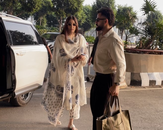 A while ago, Virat and Anushka were seen jetting off from Mumbai. They were captured by the paps before they made their way to the airport's departure gate.