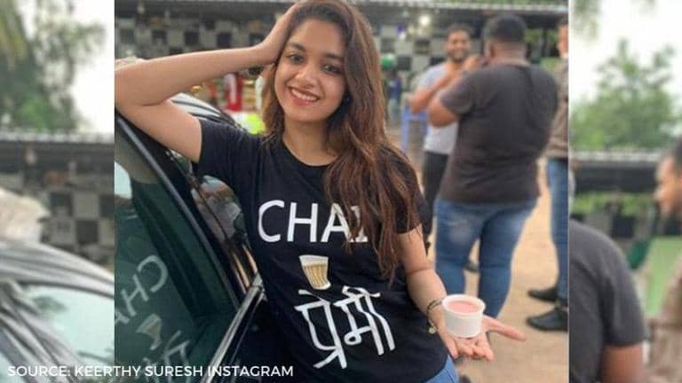 Keerthy Suresh recently revealed her love for tea and coffee. On November 2, she took to her Instagram handle and shared a picture of her posing holding a tea glass. Interestingly, Keerthy Suresh wore a graphic tee that read "Chai Premi", i.e; "Tea lover". In her caption, the Miss India actor wrote said that a coffee calls for a shop and a tea calls for a stall. She penned "Coffee calls for a shop, Chai calls for a kottu!". Take a look at Keerthy Suresh's photos.