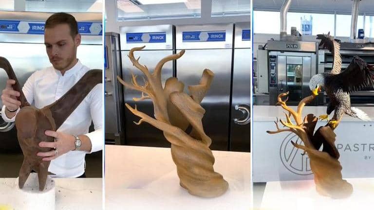 Celebrity chef and baker Amaury Guichon has made some amazing chocolate sculptures and now a bald eagle is the most recent addition to this list.