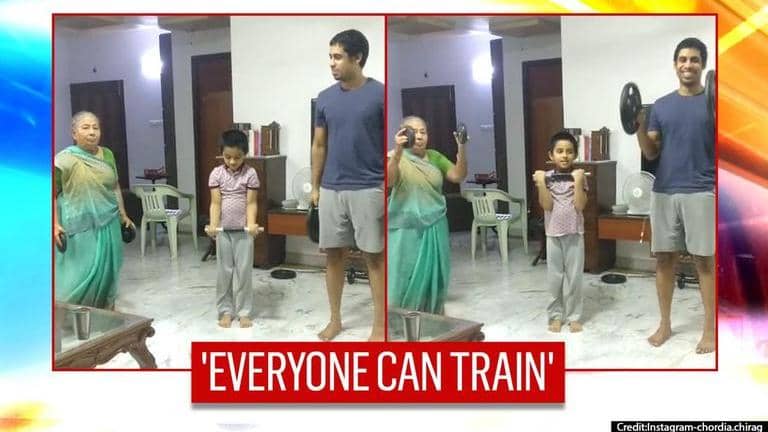 A video showing an 82-year-old grandmother in Chennai lifting weights along with her grandsons has caused a stir on the internet. Shared by a fitness enthusiast in Chennai, Chirag Chordia, to emphasise that “everyone can train”, the grandma wearing a saree can be seen enjoying the activity during the little at-home workout session. Not only lifting weights but there are multiple videos posted on Chirag’s Instagram that shows the 82-year-old doing fitness training.