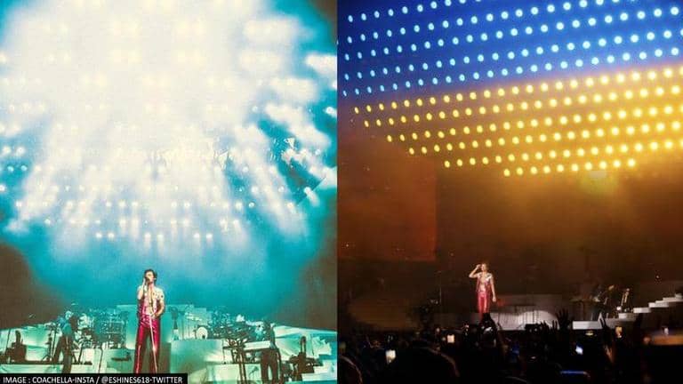 Amidst the ongoing Ukraine war, which has transcended 59 days with no signs of ceasefire in sight, pop singer Harry Styles showed his support to the war-hit nation at Coachella 2022. During his set, Styles had the stage lit up with the colours of the Ukrainian war as an act to stand in solidarity with the country. As soon as the Ukrainian flag illuminated the stage, it prompted cheers from the crowd.