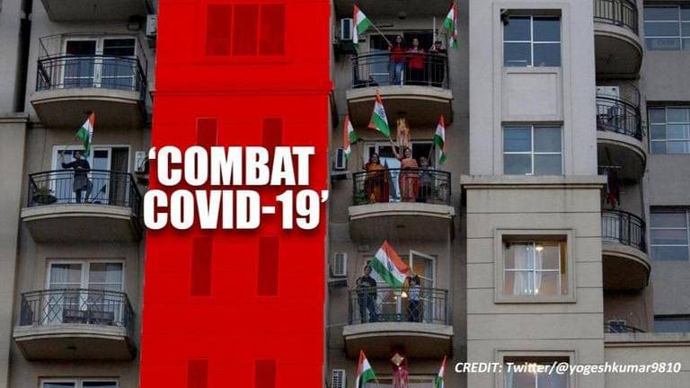 The determined residents stood in their balconies and waved the Indian flag in the evening to uplift people’s spirit in their fight against the coronavirus.