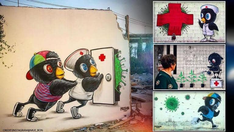 The 37-year-old street artist, name Mue Bon has been reportedly creating murals of a winged character dressed as a healthcare worker. Speaking to international media reporters, he said that through this art he wants to remind people about the situation. He added that his murals "record history" of the time humans helped each other by staying at home. Highlighting the huge gap between art and ordinary people, he said that hopefully his art would be viewed by people who not have access to art galleries.