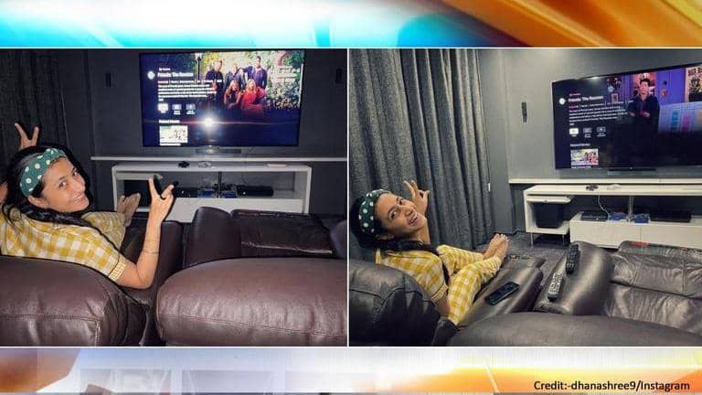 Dhanashree Verma posted a picture on her official Instagram handle, where she could be seen sitting on a black couch and watching Friends: