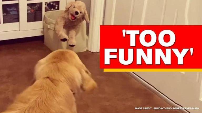 The hilarious videos of pet animals have never failed to garner massive social media attraction. From dogs to parrots, internet users are amazed by a new video every day especially amid these tense times of COVID-19 pandemic. Becoming the usual reason for spreading smiles, one such video has emerged on the internet that shows a golden retriever barking at a dog soft toy with golden fur. With the caption calling the soft toy an “intruder” at one instance the animal runs away with the perception that the toy moved by itself. Posted by Instagram user ‘Sunday the Golden Retriever’, it seems that the name of the pooch barking at the toy is Sunday and as per page’s description, it is a therapy dog in training.