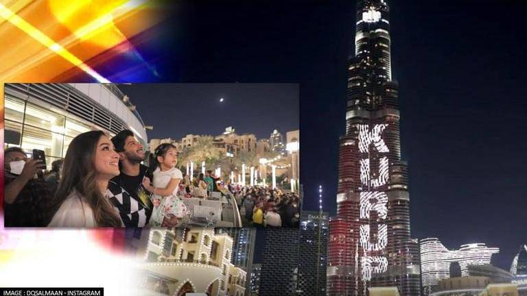 The actor was present in Dubai to watch the spectacular show with his wife Amaal Sufia, and his daughter, Maryam Ameerah Salmaan, and his fans who were thrilled to witness such a great show. Dulquer who was overwhelmed to receive such a great response from the people took to Instagram and shared a video while documenting the terrific response from the people. The actor in the post mentioned that he had never imagined that his name would be lit up in the iconic building. He credited the film and the team for their hard work that made it possible.