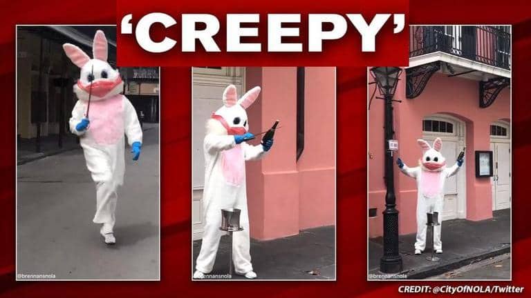 On the occasion of Easter, a ‘life-sized- Easter bunny’ was seen hopping around a street with a sword in New Orleans, US. Netizens find the video horrifying.