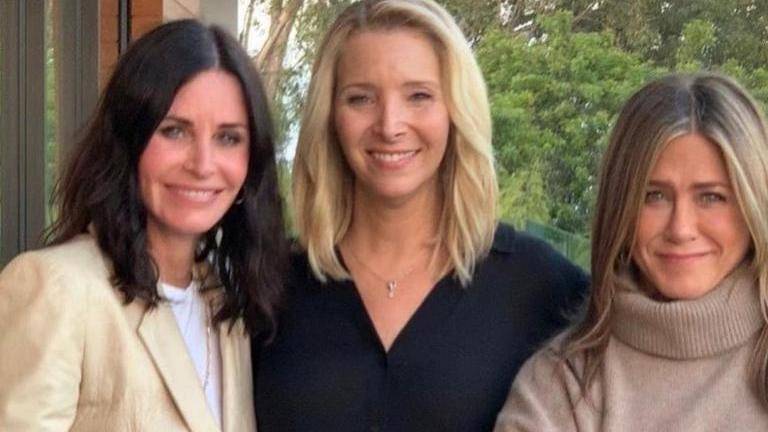'Friends' cast members Jennifer Aniston, Courteney Cox and Lisa Kudrow had a virtual get-together at the Emmy Awards. Take a look at the reunion.