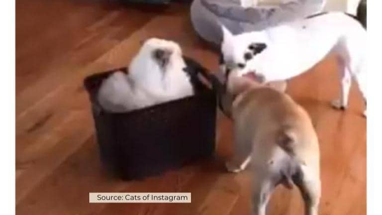 Cute and funny videos of pets, usually of cats or dogs are very popular on social media. Netizens get to see many different videos of both cats and dogs on a daily basis, but there is one distinct difference in the videos we see between cats and dogs. Video of a dog is usually where the man’s best friend plays with its owners or jumps at them in excitement; and as an absolute contrast to this, a cat generally prefers to stay in its own space. This is exactly what netizens saw in the latest viral one of the cat and dog videos.