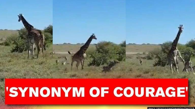 A powerful video of a Giraffe mother fending off the pack of cheetahs to protect her calf has earned applauds on the internet. In footage shared by Indian Forest Officer on Twitter, Susanta Nanda, the tall hoofed creature can be seen displaying immense courage, valour, and perseverance, as it guards its young one with her long legs as the pack attempts to amble close to the calf in the clip shot at a Kenyan safari park. While the ferocious hungry cats try to ambush the Giraffe mother and her calf, she confronts and chases them fearlessly by repeatedly warning with her strong hooves. The nearly 33 seconds clip has amassed over 11.7k views as the internet lauded the mother’s “fearless" spirit compelling the wild cats to flee the scene.