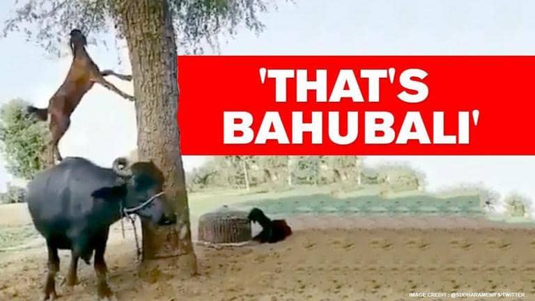 A footage of a climber goat standing on the buffalo and happily munching the leaves on a tree has reminded the internet of ‘Bahubali’ as several others were in splits. Shared on Twitter by Indian Forest Officer Sudha Ramen, the nearly 10-second footage shows a goat downright adept in the art of climbing as it jumps swiftly on the buffalo, walks on its back, hoofs halfway on the bark to graze from on top of the tree. Placing its front limbs on the wood for balance, almost suspended mid-air, the determined goat feeds on the tasty snack, the branches.