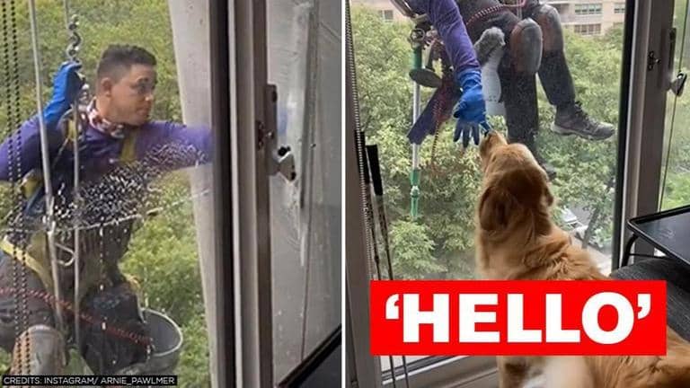 Dogs are one of the most social animals and testifying for the same is a video clip which shows a golden retriever greeting a window cleaner. It was shared on Instagram by page run in Dog’s own name Arnie Pawlmer and shares moments from the pooch's daily life. The brief video shows the pooch trying to befriend the window cleaner at the other side of the glass.
